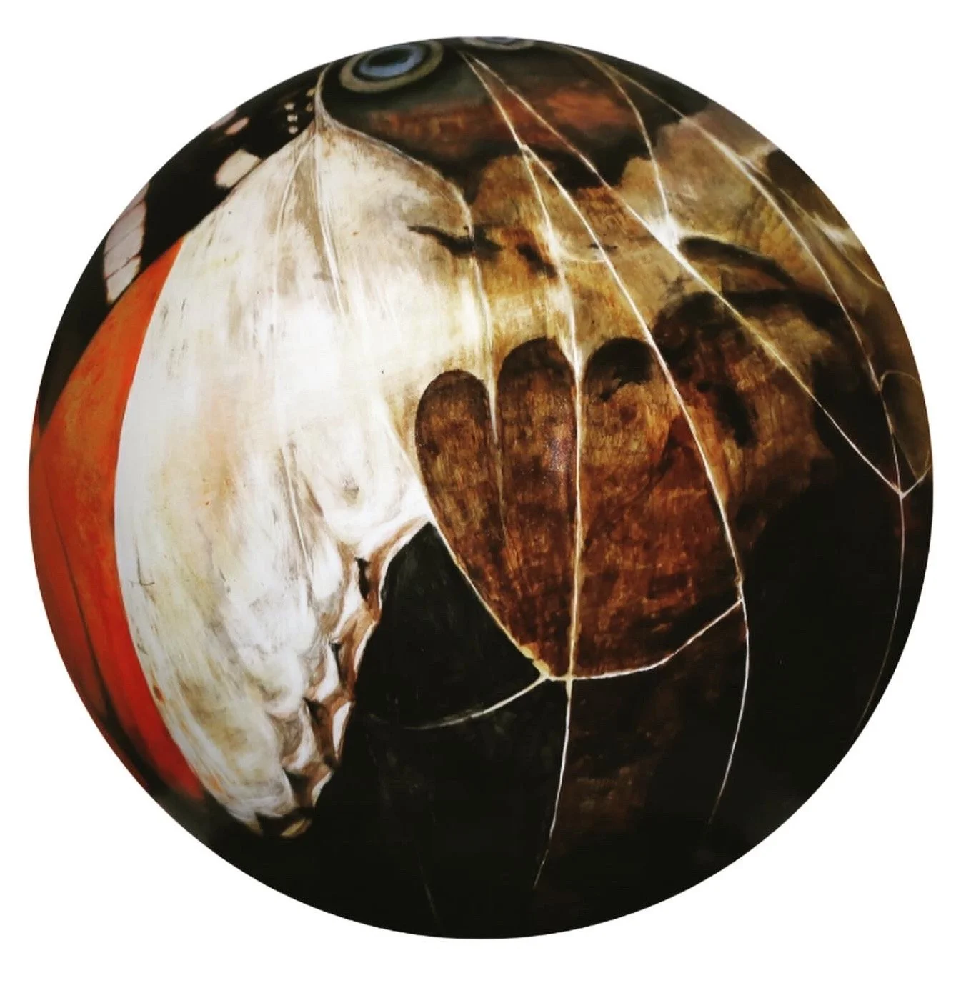 Jo’s south-at-top butterfly globe subverted traditional north orientated maps, and represented continents as markings on the wings of a butterfly as a metaphor for migration, freedom, metamorphosis and societal change.